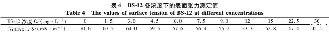 LAS是應用最廣泛的陰離子表面活性劑,是我國合成洗滌劑活性物的主要構成,可用作洗衣粉、香波、金屬清洗劑、脫墨劑等產品的原料,分析其生物降解性能十分必要。LAS試樣在不同濃度時測定的表面張力結果見表3。
