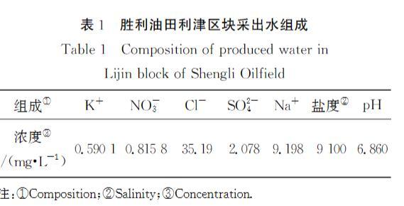 實(shí)驗(yàn)試劑:葡萄糖、檸檬酸鈉、酵母粉、KH2PO4、(NH4)2SO4、MgSO4·7H2O、乙酸乙酯為分析純,購自國藥集團(tuán)化學(xué)試劑有限公司;正己烷為優(yōu)級(jí)純,購自Merck公司;二氯甲烷為優(yōu)級(jí)純,購自B&J公司;正構(gòu)烷烴混合標(biāo)準(zhǔn):C8—C40包含異構(gòu)烷烴姥鮫烷和植烷,購自Accustandard公司;層析硅膠(100~200目)及硅膠層析板購自青島海洋化工廠;原油采集自中國石化勝利油田有限公司利津區(qū)塊;降解實(shí)驗(yàn)用水根據(jù)勝利油田利津區(qū)塊采出水組成配置(見表1),采出水中pH、鹽度用多參數(shù)儀(Manta3.0,Eureka,美國)測(cè)定,K+、NO-3、Cl-、SO2-4、Na+等離子依據(jù)SY/T5523—2016《油田水分析方法》中給出的檢測(cè)方法檢測(cè)。