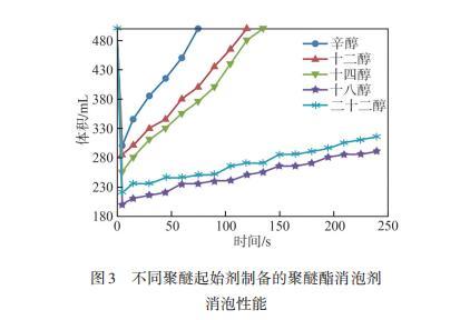 圖2脂肪酸碳鏈長度對聚醚酯消泡劑消泡性能的影響