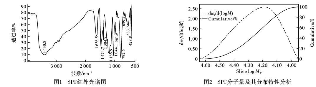1)SPF紅外光譜分析(IR)用Nicolet公司的NEXUS 670 FT-IRESP紅外光譜儀測(cè)定SPF高效減水劑紅外吸收光譜。